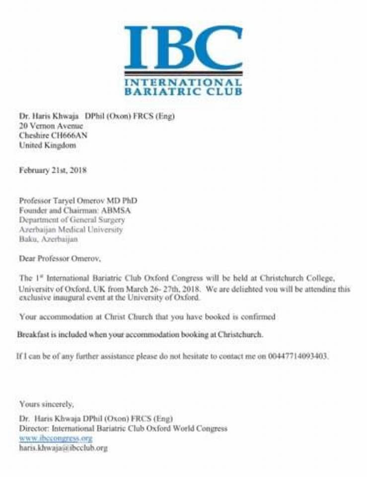 “Dünyanin 50 dən çox dövlətindən Oxfrod Universitetindən göndərilən rəsmi olaraq dəvət olunmuş 300-ə yaxın Bariatrik-Metabolik Cərrahiyyə ilə məşğul olan Cərrahların qatıldığı bu möhtəşəm Kongres çox effektiv planlanmışdır. Biz milli dərnək olaraq Oxford Universitetində təşkil olunan bu konfransda Dünya şöhrətli Professorların işləri, həmçinin Bariatrik-Metabolik cərrahiyyənin müasir nailiyyətləri ilə yaxından tanış olduq və eyni zamanda öz təcrübələrimizə dair fikir mübadiləsi apardıq. Konfrans Böyük Britaniyanın nüfuzlu tibb ocaqlarından biri olan “Royal College of Surgeon” tərəfindən akreditasiya olunaraq 12 CME balı ilə qiymətləndirilmişdir. Düşünürük ki, önünümzdəki Beynəlxalq tədbirlərdədə Bariatrik-Metabolik Cərrahiyyə sahəsində aparılan işlər barəsində geniş məlumatlar verib təcrübə mübadiləsi apararaq bu sahəni Ölkəmizdə daha da irəli getməsinə nail olacağıq. Bu möhtəşəm Kongresi də Azərbaycan Bariatrik-Metabolik cərrahiyyəsini təmsil edərək başa vurduq…” Öz təəsüratların bölüşən dərnək sədri Kongresin işini çox yüksək qiymətləndirərək gələcəkdə belə Beynəlxalq tədbirlərin Ölkəmizdədə olacağına əmindir.