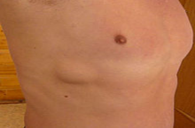 Kliniki müayinə zamanı döş qəfəsi divarında yumşaq konsistensiyalı, tənəffüs aktı zamanı ölçüsünü dəyişən, ağrısız şişkinlik müəyyən olunur. Rentgenoloji müayinə zamanı diaqnozu təsdiqləmək olur. Şübhəli hallarda KT müayinəsi çox faydalıdır, defektin ölçüsünü müəyyən etməyə imkan verir.