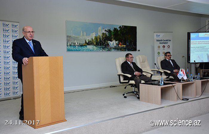 Sonra Liv Hospitalının əməkdaşı, professor Erdal Karaöz çıxış edərək təmsil etdiyi qurumun tarixi barədə məlumat verib. Bildirib ki, hospital 2015-ci ildə təsis olunub və ötən 2 il ərzində bir çox sahələrdə uğurlara imza atıb. Daha sonra o, "Kök hüceyrələri və onun tibbdə tətbiqi" mövzusunda məruzəsini təqdim edib. Alim kök hüceyrələrinin tətbiqinin tibbin son illərdə əldə etdiyi mühüm nailiyyət olduğunu və Türkiyədə 17 ildir bu sahədə tədqiqatların aparıldığını bildirib. E.Karaöz funksiyasını normal yerinə yetirməyən və ya ölən hüceyrələrin kənardan orqanizmə yeridilən yeni hüceyrələr vasitəsilə xəstəliyi müalicə etdiyini söyləyib. Məruzəçi kök hüceyrələrinin ana bətnindəki embrional və yetkin kök hüceyrəsindən əldə edildiyini bildirib. O, heyvanlar üzərində də təcrübələrin aparıldığını və klonlaşdırma metodu ilə kök hüceyrələrinin əldə olunduğunu söyləyib. Professor bu gün xərçəng, orqan çatışmazlığı, Parkinson, onurğa zədələri, sinir zədələnmələri, iflic, böyrək və digər xəstəliklərin müalicəsində kök hüceyrələrdən istifadə edildiyini diqqətə çatdırıb. O, Azərbaycanda bu sahədə mərkəzin qurulması üçün lazımi dəstək göstərəcəklərini bildirib.