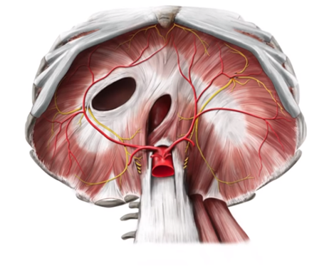Diafraqmada 3 böyük (aorta, ezofageal, aşağı boş vena) və kiçik 4 dəliklər mövcuddur. (parasternal – Morgan, Lorrey, plevroperotoneal - Bokdalek)