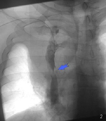 • Rentgen ilkin müayinə olsa da qeyri-spesifikdir (adətən divarararlığı genişlənməsi görünür) (Şəkil 3).