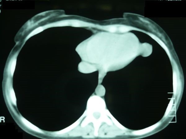 • ön mediastinumda – timoma, tiroid törəmələri, teratoma və limfoma
