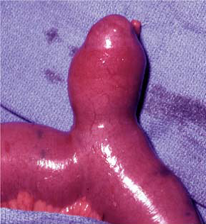 Klinik praktikada ikiləşmiş bağırsağın kəskin genişlənməsinin (kəskin bağırsaq keçməzliyi) və ya qan təchizinin kəskin pozulmasının perforasiya ilə ağırlaması hadisələri də rast gəlinir.