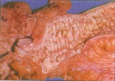 Klinika. Çox rəngarəngdir. Diareya və sorulma pozğunluqlarına görə çəki itkisi kardinal simptomdur. İshalsız gediş zamanı oynaq ağrıları (iltihablı və iltihabsız klinik gediş), yağlı və ya qanlı nəcis ifrazı, qarında spazmlar, köp, qızdırma, yorğunluq, dərinin tündləşməsi, iştahın azalması, limfa düyünlərinin böyüməsi, NB-ın selikli qişasında anomal sarı və ağ ləkələrin (endoskopik görünüş) əmələ gəlməsi kimi fərqli əlamətlər müşahidə olunur.