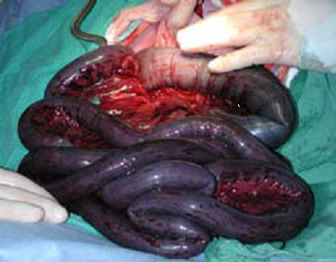 Ən çox nazik bağırsaq zədələnir. Lakin infeksiya istənilən üzvə yayıla bilər.