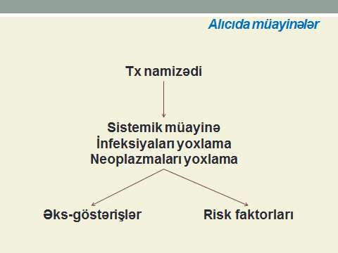 - Əməliyyatdan əvvəl alıcı və vericiləri kanser nöqteyi-nəzərdən hərtərəfli yoxlamaq lazımdır.