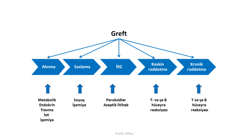 - Ortaya çıxma müddətinə görə ağırlaşmalar erkən və gec dövr ağırlaşmaları ola bilər (Cədvəl 1). Əməliyyatdan sonrakı erkən dövrdə əməliyyata bağlı ümumi ağırlaşmalar (orqan və sistem yetməzlikləri, cərrahi sahə və sistemik infeksiyalar, qanaxmalar və s.) və qreft ağırlaşmaları (qreft disfunksiyaları, rəddetmə, damar və axacaq problemləri və s.) çox rast gəlinir. Gec dövrlərdə isə qreftin disfunksiyası (kəskin və xroniki rəddetmə, əsas xəstəliyin təkrarlanması, axacaq problemləri və s.) və immunosupressiyaya bağlı ağırlaşmalar (opportunistik infeksiyalar, toksikoz, maliqnizasiya və s.) üstünlük təşkil edir.
