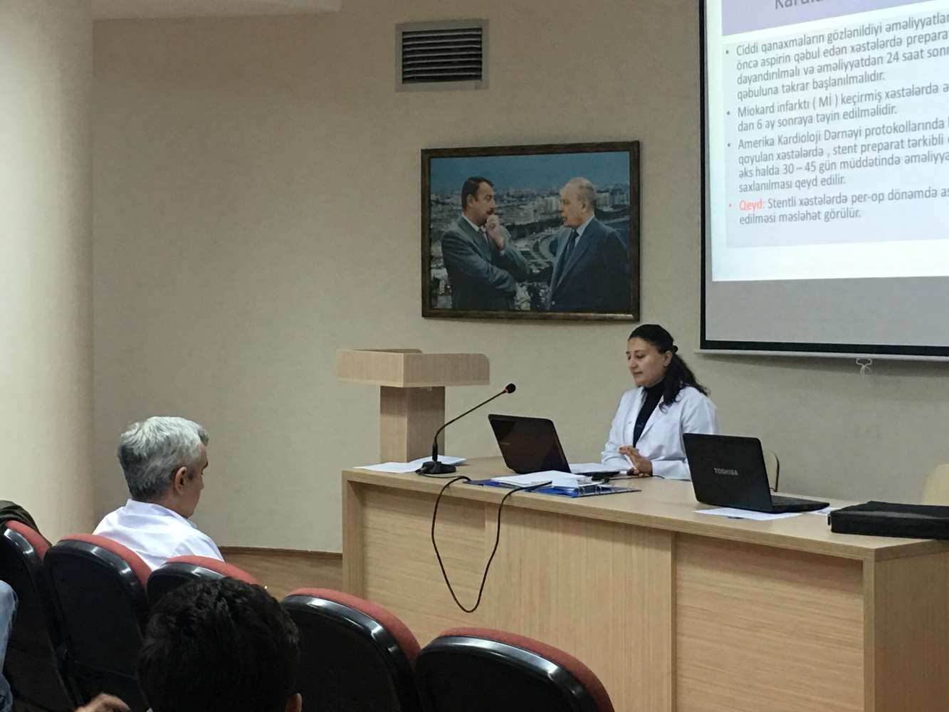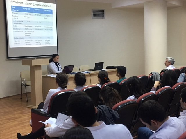 Azərbaycan Tibb Universitetinin I Cərrahi xəstəliklər kafedrasının II il rezidenti Tairova Həmidə 11.10.2017-ci il tarixində rezidentlərin seminar praktik məşğələsində “Cərrahi xəstələrin əməliyyatönü hazırlığı” mövzusu ilə çıxış etmişdir. Çıxış zamanı mövzunun aktuallığı, müasir müayinə metodları, xüsusi ilə də əməliyyatönü hazırlıqlardan biri olan bağırsaqların mexaniki təmizlənməsi qeyd edilmiş, ən son araştırmalara əsasən bu hazırlığın post-op dönəmdə ağırlaşmaların artırdığı vurğulanmışdır. Sonda mövzu ilə bağlı suallar müzakirə edildi. Təklif və iradlar irəli sürüldü.